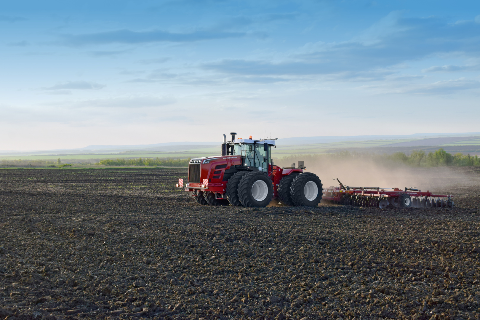 Для этого очень удобно использовать штатный воздушный компрессор с двумя ресиверами по 40 л каждый, которым в базе оснащаются все тракторы Ростсельмаш. Его же можно использовать для подкачки шин и для очистки кабины — давления и объема вполне хватает для этих операций.