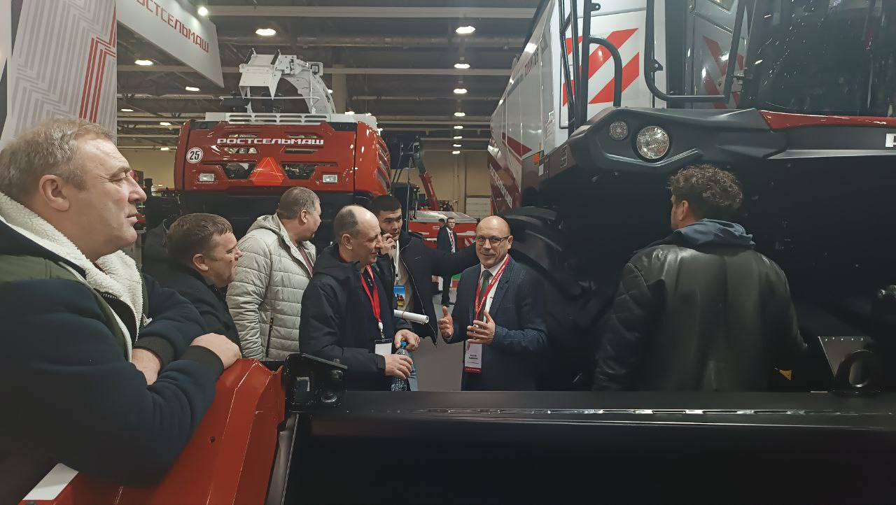 Во второй день экскурсии в Ростове-на-Дону южноуральскиеаграрии посетили агропромышленную выставку «Интерагромаш». Там в павильоне «Дон-Экспоцентра» и на открытой площадке Ростсельмаш представил 16 единиц техники передовых моделей — зерноуборочные комбайны TORUM 785 и T500, кормоуборочный комбайн F 1500, тракторы Ростсельмаш 2405, Ростсельмаш 1370, прицепное и навесное оборудование, современные цифровые решения для техники. На стенде с фермерами пообщался управляющий товарной группой компании Сергей Савенков.