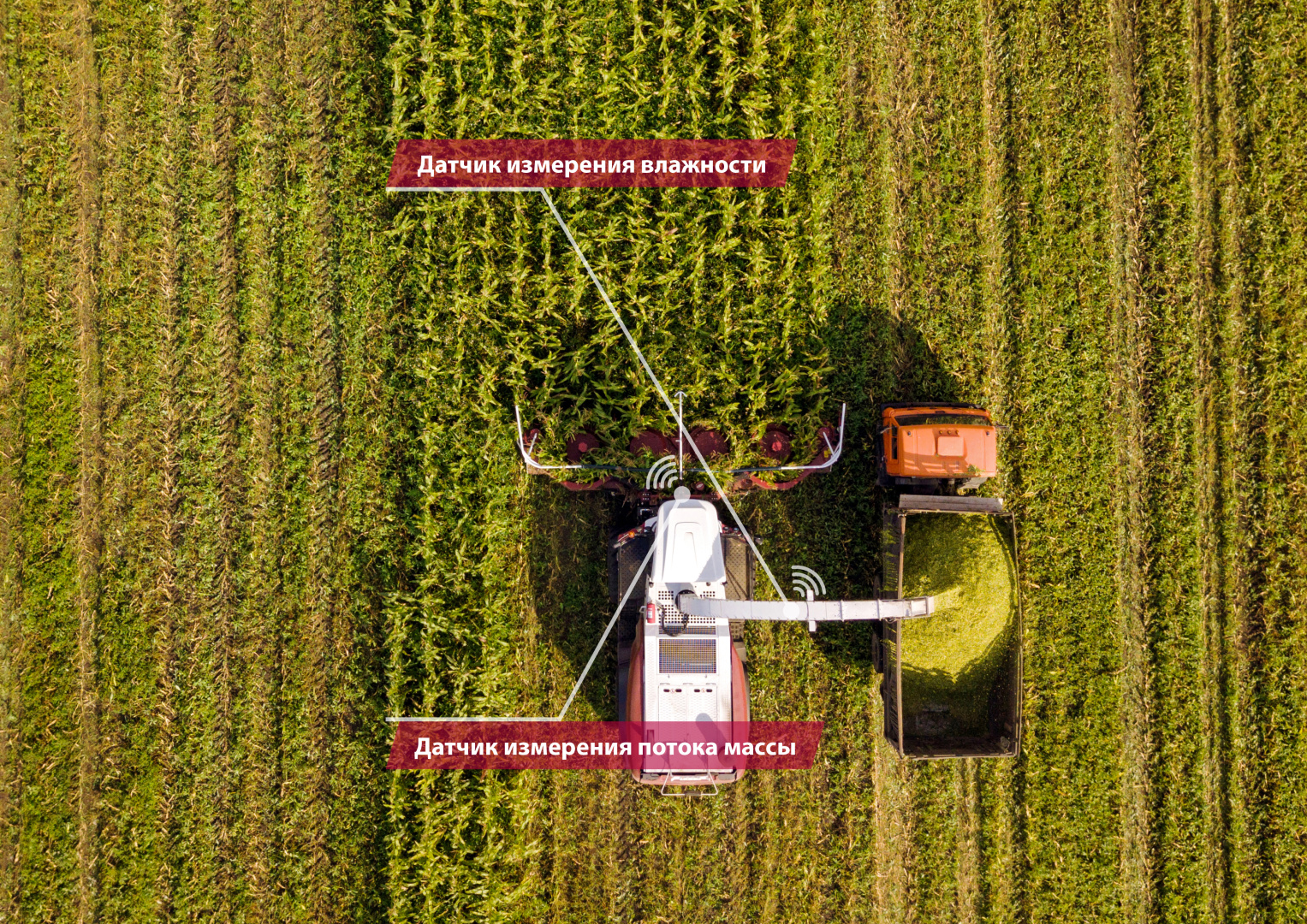 Высокоточные опции работают, основываясь на специальных датчиках — датчик измерения потока массы, датчик измерения влажности и другие. В процессе комбайнирования бортовая система автоматически осуществляет изменение длины резки. Это позволяет повысить качество кормов для КРС.
